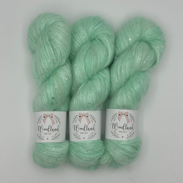 Sanft wie ein Sommerhauch, schimmernd wie Sternenstaub: Dieses luxuriöse Garn vereint die zarte Flauschigkeit von Kid Mohair mit dem seidigen Glanz von Seide – und als Krönung tanzen feine Pailletten im Licht und verleihen jedem Projekt einen Hauch von Magie. Der charakteristische Halo des Kid Mohairs umhüllt jedes Projekt mit einem sanften, schimmernden Schleier und verleiht ihm eine unvergleichliche Eleganz.