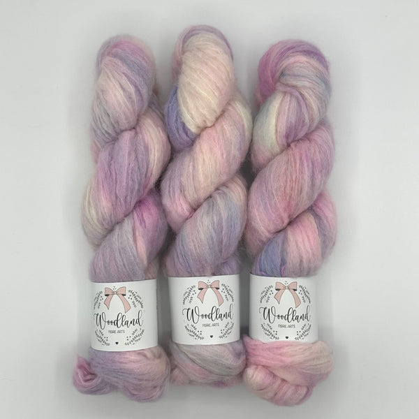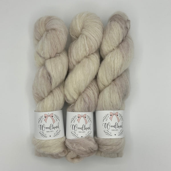Dieses Garn ist wie eine kleine Wolke, die um einen Kern gesponnen wurde – unglaublich leicht, fluffig und weich. Durch die besondere Struktur entsteht ein voluminöses Maschenbild mit zusätzlichem Kuschelfaktor, da die Fasern nicht lose abstehen, sondern sanft umwickelt sind.